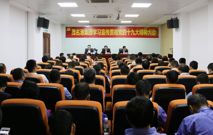 12月5日,茂名港集團(tuán)召開學(xué)習(xí)宣傳貫徹黨的十九大精神大會(huì),集團(tuán)黨委書記、董事長(zhǎng)劉乃英作學(xué)習(xí)宣傳貫徹黨的十九大精神輔導(dǎo)報(bào)告,集團(tuán)總裁羅大方宣讀了《中共茂名港集團(tuán)委員會(huì)關(guān)于印發(fā)<學(xué)習(xí)宣傳貫徹黨的十九大精神總體工作方案>的通知》,集團(tuán)黨委副書記、紀(jì)委書記肖炳璋主持會(huì)議。