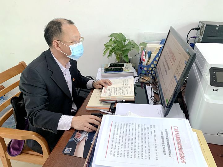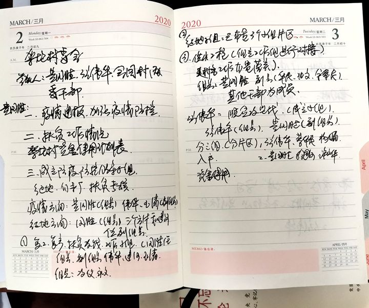 根據(jù)當(dāng)?shù)卮迕穸嗄陙?lái)下地勞作的習(xí)慣,他把田間地頭作為了防疫宣傳工作的重點(diǎn)場(chǎng)所。拎著小喇叭,奔走在田埂地頭的他,除了主動(dòng)向村民宣傳出入佩戴口罩、減少聚集、不走村訪友等防疫要求外,還積極向村民宣講疫情最新消息,引導(dǎo)村民堅(jiān)定信心、科學(xué)防控,做到不造謠、不信謠、不傳謠。 全村1412戶村民,他配合村委深入排查每一名村民的動(dòng)向及身體狀況,從外地回來(lái)人員返鄉(xiāng)前14天的去向更是核查重點(diǎn),他都詳細(xì)詢問(wèn)并協(xié)助登記造冊(cè)。由于電腦操作不夠便捷,他便夾雜了一些手寫(xiě)的臺(tái)賬資料,便于走村穿戶時(shí)仍能及時(shí)整理出村里人員健康動(dòng)態(tài)信息并按時(shí)向上級(jí)部門(mén)報(bào)送。特別是在架炮村發(fā)現(xiàn)一名廣州返鄉(xiāng)人員與新冠肺炎確診患者有密切接觸史后,他迅速指導(dǎo)開(kāi)展落實(shí)居家隔離措施,并每天上門(mén)跟蹤該返鄉(xiāng)人員的體溫及身體狀況,直至其解除隔離,他才大大的松了一口氣。