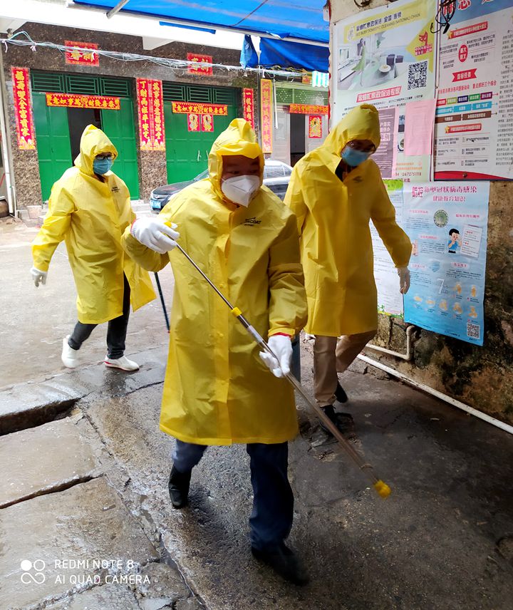 進(jìn)駐南街社區(qū)后,他每天拎著喇叭到社區(qū)里去開(kāi)展宣講工作,勸導(dǎo)群眾不出門(mén)、不聚集、戴口罩,養(yǎng)成良好生活衛(wèi)生習(xí)慣;每天背著消毒水一次次地清潔消毒街道、市場(chǎng)的死角也成了主要工作之一,一天下來(lái),被臨時(shí)用來(lái)做防護(hù)用的簡(jiǎn)便雨衣里面全都是汗味、消毒水味。工作之余,他還經(jīng)!伴_(kāi)小差”,拎著防疫用品跑去當(dāng)?shù)乩щy戶家里“串門(mén)”。雖然離曾經(jīng)駐守的博賀村很近,但由于疫情防控的需要不能隨意走動(dòng)進(jìn)村,他一直放心不下曾經(jīng)幫扶過(guò)的孤寡老人,就經(jīng)常打電話向新派的駐村干部了解情況,叮囑多關(guān)照。