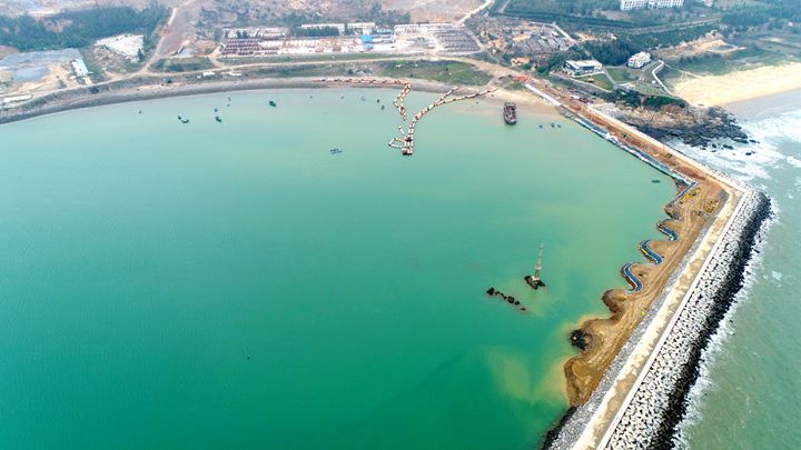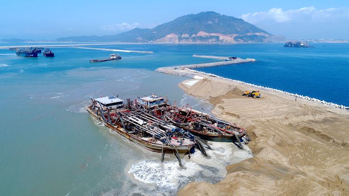 現(xiàn)場所見,大型抽沙作業(yè)船開足馬力,往來穿梭作業(yè)。據(jù)悉,粵西LNG造陸項(xiàng)目已形成陸域面積400畝,項(xiàng)目初現(xiàn)規(guī)模。