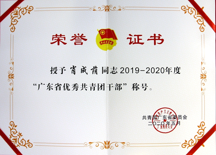 “廣東省優(yōu)秀共青團(tuán)干部”榮譽(yù)稱號