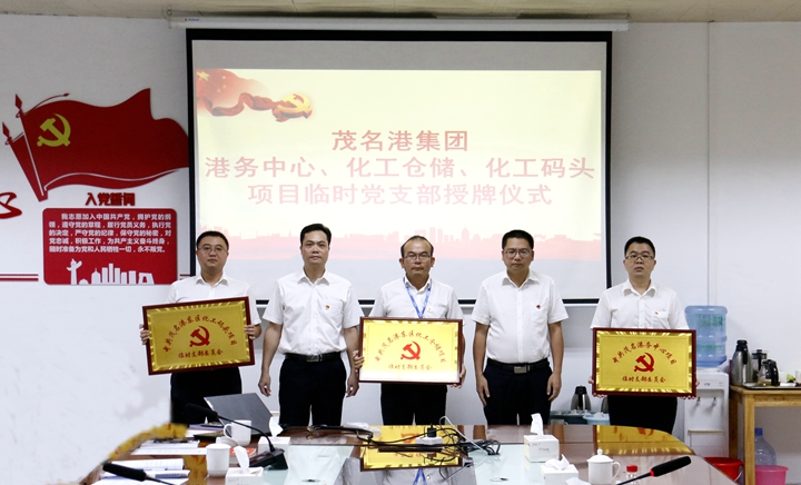 5月12日下午,在博賀新港區(qū)項目會議室,茂名港集團組織舉行了簡單而莊嚴的項目臨時黨支部授牌儀式,為茂名港務(wù)中心、東區(qū)化工碼頭和東區(qū)化工倉儲三個項目臨時黨支部授予牌匾。集團黨委副書記、工會主席肖炳璋,集團黨委委員、副總裁楊超燦,黨群工作部、項目部黨員代表和施工單位及監(jiān)理單位代表共40多人參加了授牌儀式。