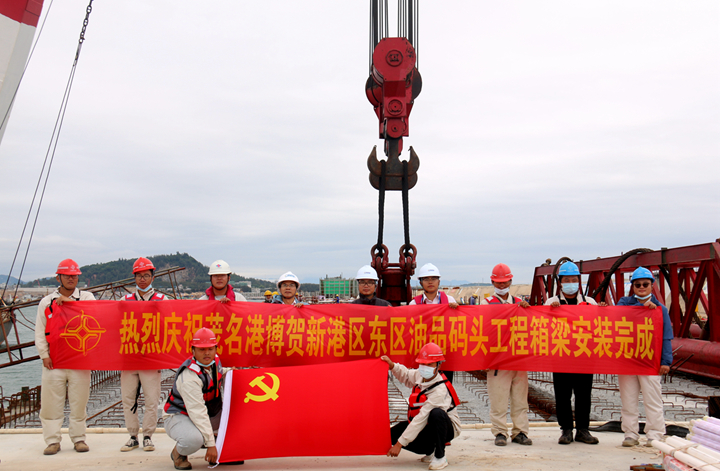 “對準,好的,到位了,開始落梁!” 10月22日上午10時,隨著現(xiàn)場施工負責(zé)人一聲令下,茂名港博賀新港區(qū)東區(qū)油品碼頭工程最后一件箱梁順利安裝,該工程公用管廊箱梁安裝作業(yè)全部完成!