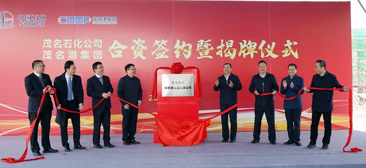 揭牌儀式 在與會人員的共同見證下,毛遠(yuǎn)洪與肖炳璋分別代表茂名石化公司、茂名港集團(tuán)簽訂了茂名石化博賀港儲運(yùn)有限公司合資合同。與會領(lǐng)導(dǎo)及雙方代表共同為茂名石化博賀港儲運(yùn)有限公司進(jìn)行了揭牌儀式。(何夢娉) |