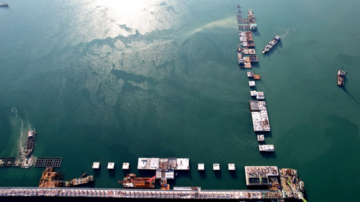 本項目52個沉箱全部一次順利安裝完成,提前完成重要節(jié)點計劃,為下一步碼頭上部結(jié)構(gòu)的施工提供了工作面,也為下一節(jié)點目標的如期建設(shè)創(chuàng)造了良好條件。(古智斤) |