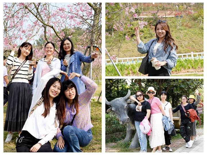 活動(dòng)期間,女職工們漫步在廉江市櫻花公園的櫻花大道中,初綻櫻花透出的淡淡花香,微風(fēng)中輕輕搖曳的粉紅色櫻花,讓大家獵得了一園春色;接著來到響應(yīng)國家鄉(xiāng)村振興戰(zhàn)略開發(fā)的大型田園綜合體田園寨景點(diǎn),這里風(fēng)景秀麗、別具一格的田園風(fēng)光構(gòu)成了一幅幅美麗的風(fēng)景圖,讓人心曠神怡;最后,女職工們前往廣東省省級(jí)愛國主義教育基地廉江鶴地水庫,參觀了這個(gè)充滿著紅色基因、凝聚無數(shù)勞動(dòng)人民心血的偉大工程,職工們對(duì)先輩那種克服萬難、艱苦奮斗的敬佩之情油然而生,紛紛為他們點(diǎn)贊。