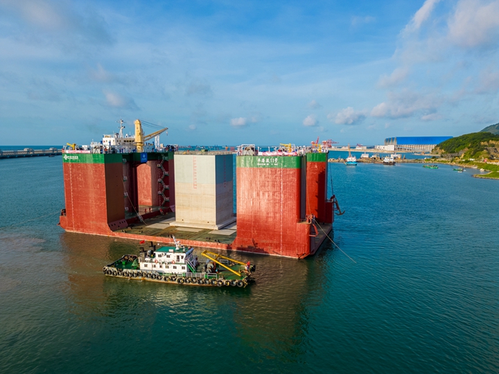 “沉箱已成功上駁就位!”隨著對(duì)講機(jī)中激動(dòng)的聲音響起,茂名港博賀新港區(qū)30萬噸級(jí)原油碼頭項(xiàng)目首個(gè)沉箱成功出運(yùn),標(biāo)志著該項(xiàng)目正式進(jìn)入主體建設(shè)新階段。