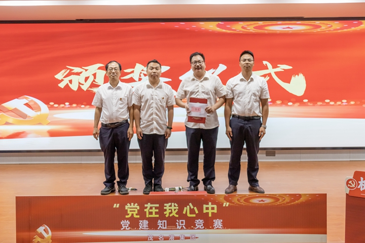 機(jī)關(guān)先鋒隊(duì)、物業(yè)勇闖隊(duì)、港口沖鋒隊(duì)、王港挑戰(zhàn)隊(duì)榮獲優(yōu)秀獎(jiǎng) 在陣陣掌聲中,集團(tuán)領(lǐng)導(dǎo)為獲獎(jiǎng)隊(duì)伍頒發(fā)了榮譽(yù)證書并進(jìn)行合影留念。 整場(chǎng)競(jìng)賽精彩紛呈,氣氛熱烈,選手之間通力合作,場(chǎng)上比分你追我趕,大家“賽”出了水平,“競(jìng)”出了風(fēng)采,充分體現(xiàn)了茂名港人積極奮進(jìn),努力拼搏的精神。集團(tuán)黨員干部以此為契機(jī),養(yǎng)成自學(xué)、好學(xué)的習(xí)慣,持之以恒、與時(shí)俱進(jìn)的學(xué)習(xí),避免知識(shí)老化、思想僵化、能力退化,在各自的崗位上掌握新方法、增長(zhǎng)新才干、解決新問題,把習(xí)近平新時(shí)代中國(guó)特色社會(huì)主義思想轉(zhuǎn)化為堅(jiān)定理想、錘煉黨性和指導(dǎo)實(shí)踐、推動(dòng)工作的強(qiáng)大力量,營(yíng)造了全集團(tuán)風(fēng)清氣正、積極向上、斗志昂揚(yáng)的干事氛圍。