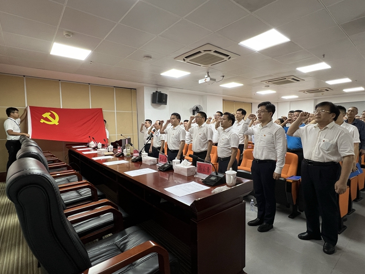 在表彰大會(huì)上,面對鮮紅的黨旗,全體黨員面向鮮艷的黨旗舉起右拳,莊嚴(yán)宣誓,回顧對黨和人民的承諾,進(jìn)一步錘煉對黨的絕對忠誠品格。