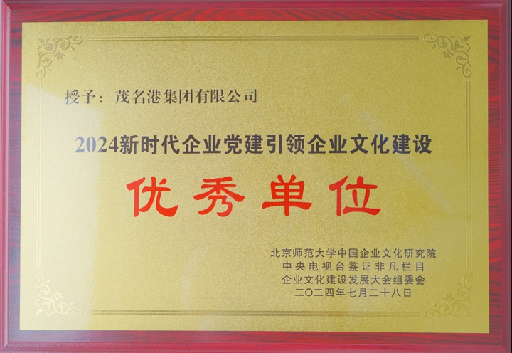 會上,茂名港集團獲得“2024新時代企業(yè)黨建引領企業(yè)文化建設優(yōu)秀單位”,集團黨委書記、董事長王志華榮獲“2024新時代企業(yè)黨建引領企業(yè)文化建設先進個人”稱號。