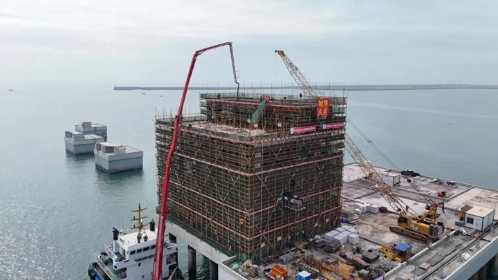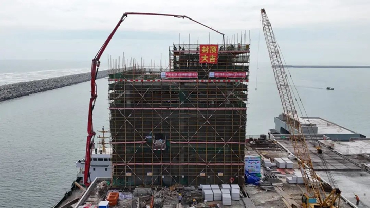 12月25日,隨著最后一方混凝土在工作樓頂層澆筑成型,茂名港博賀新港區(qū)30萬噸級(jí)原油碼頭工程工作樓順利封頂。從項(xiàng)目藍(lán)圖到喜封金頂,不僅標(biāo)志著項(xiàng)目取得了重要的階段性勝利,也是30萬噸級(jí)原油碼頭項(xiàng)目臨時(shí)黨支部在2024年取得的又一勝利戰(zhàn)果。