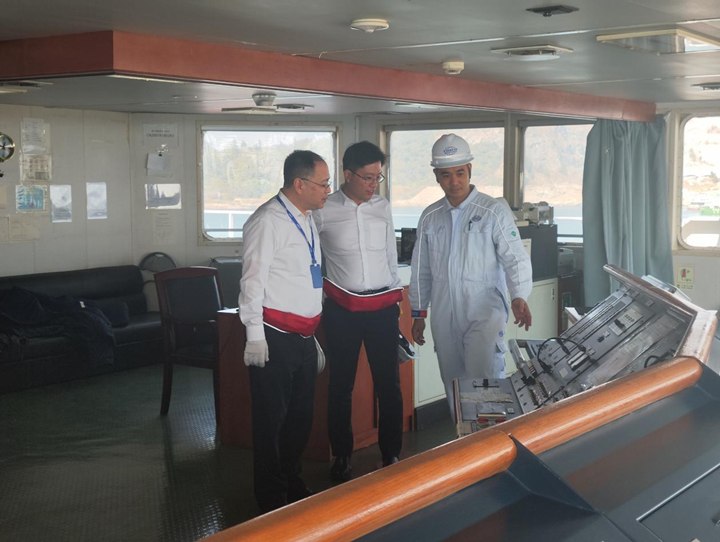 期間,秦炯參觀了甲板和機(jī)艙,詳細(xì)了解了船舶的維護(hù)保養(yǎng)情況,聽取了船員們的日常工作開展情況,深入了解船舶的運(yùn)營(yíng)狀況與船員生活狀況,了解他們所思所想所盼。同時(shí),秦炯代表中遠(yuǎn)海運(yùn)能源公司向全體船員致以元旦問(wèn)候,并強(qiáng)調(diào)節(jié)日期間要加強(qiáng)安全工作,共慶新年,勉勵(lì)船員們高質(zhì)量、高效率地完成各項(xiàng)任務(wù),以實(shí)際行動(dòng)為新的貢獻(xiàn)作出努力。他還強(qiáng)調(diào),茂名港集團(tuán)與中遠(yuǎn)海運(yùn)能源公司的合作具有廣闊的前景和巨大的潛力,期待雙方進(jìn)一步發(fā)揮各自優(yōu)勢(shì),實(shí)現(xiàn)資源共享、優(yōu)勢(shì)互補(bǔ)。