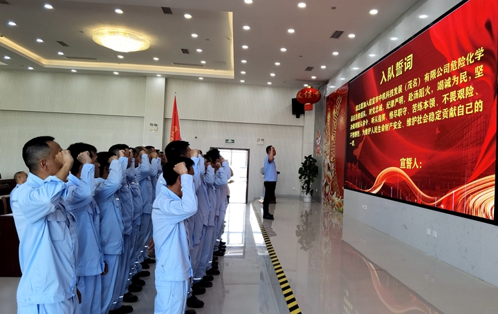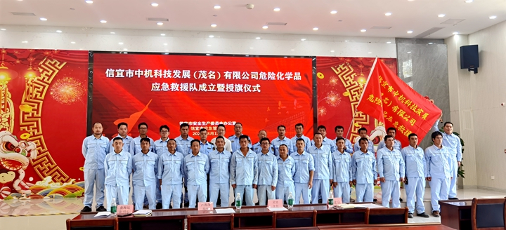 8月12日,集團(tuán)下屬企業(yè)中機(jī)科技發(fā)展(茂名)有限公司(以下簡稱“中機(jī)科技公司”)舉行危險(xiǎn)化學(xué)品應(yīng)急救援隊(duì)成立暨授旗儀式。信宜市安全生產(chǎn)委員會(huì)、市應(yīng)急管理局相關(guān)領(lǐng)導(dǎo)出席儀式并為救援隊(duì)授旗。