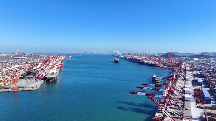 “我們聯(lián)合港口升級‘關(guān)港通’智慧查驗(yàn)平臺,將涉港作業(yè)的11個環(huán)節(jié)優(yōu)化縮減至3個,單票貨物物流作業(yè)、繳費(fèi)提離等辦理時間節(jié)省6小時以上,優(yōu)先查驗(yàn)的鮮活易腐農(nóng)產(chǎn)品、AEO高級認(rèn)證企業(yè)貨物平均調(diào)運(yùn)時間縮短5小時,僅青島港區(qū)每年就可為企業(yè)節(jié)約綜合成本約3500萬元!秉S島海關(guān)查檢一處副處長俞挺說道。 此外,青島港將綠色低碳理念貫穿發(fā)展全鏈條,從油電拖輪、氫電拖輪投入使用,到全球首創(chuàng)空軌集疏運(yùn)系統(tǒng);從高點(diǎn)站位、系統(tǒng)制定綠色低碳轉(zhuǎn)型規(guī)劃方案,到發(fā)布“碳中和”港口評價標(biāo)準(zhǔn);從規(guī);队眯履茉囱b備,到建成全國港口首座加氫站、全面升級岸電設(shè)施,每一項(xiàng)舉措都充分印證了港口作為國民經(jīng)濟(jì)晴雨表,在綠色低碳發(fā)展中的責(zé)任擔(dān)當(dāng)。