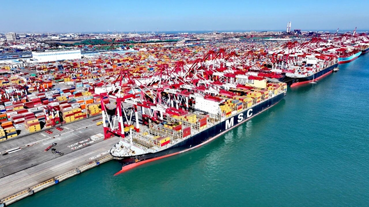 在建成全國首座全國產(chǎn)全自主自動化碼頭基礎(chǔ)上,青島港加速智慧港口迭代升級,推動人工智能應(yīng)用中試基地成果轉(zhuǎn)化。今年以來,持續(xù)優(yōu)化、推廣自主研發(fā)的A-TOS(碼頭智能管控系統(tǒng)),13次刷新自動化碼頭裝卸效率世界紀(jì)錄;推進(jìn)傳統(tǒng)碼頭自動化改造,通過研發(fā)碼頭智能體、攻關(guān)自動化裝卸關(guān)鍵技術(shù),實(shí)現(xiàn)全場景、全流程、全機(jī)種自動化,助力集裝箱、紙漿、鐵礦石、糧食等貨種接連打破效率紀(jì)錄;打造“云港通”口岸線上服務(wù)平臺,實(shí)現(xiàn)“關(guān)港通”智慧查驗(yàn),應(yīng)用全球首個港口服務(wù)大模型方舟TaaS,進(jìn)一步提升了裝卸作業(yè)的服務(wù)體驗(yàn)和決策效率。 智慧港口效率的提升離不開海關(guān)監(jiān)管服務(wù)的升級保障。青島海關(guān)充分發(fā)揮山東港口青島港在‘一帶一路’中的陸;ヂ(lián)優(yōu)勢,推廣“先期機(jī)檢”“抵港直裝”“船邊直提”等自動化作業(yè)模式,通過升級升級智能空軌、集裝箱順勢核重等智能化設(shè)施設(shè)備,將海關(guān)監(jiān)管無縫嵌入港口生產(chǎn)作業(yè),實(shí)現(xiàn)了海關(guān)與港口物流信息交互,為外貿(mào)企業(yè)打造了一條綠色、高效的出海物流通道。