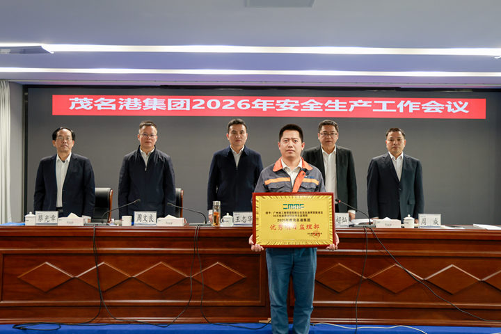 2月9日上午,茂名港集團(tuán)2026年安全生產(chǎn)工作會議在港務(wù)中心召開。會議全面總結(jié)過去一年安全環(huán)保工作,部署新一年重點(diǎn)任務(wù)。集團(tuán)黨委書記、董事長王志華出席會議并講話。集團(tuán)黨委委員、副總裁楊超燦主持會議并對年度安全環(huán)保重點(diǎn)工作作出部署。 會議對在2025年度安全生產(chǎn)工作中表現(xiàn)突出的集體和個人予以表彰,授予“安全生產(chǎn)先進(jìn)集體”“安全生產(chǎn)先進(jìn)班組”“平安工地”“優(yōu)秀項目監(jiān)理部”“安全衛(wèi)士”等榮譽(yù)稱號。